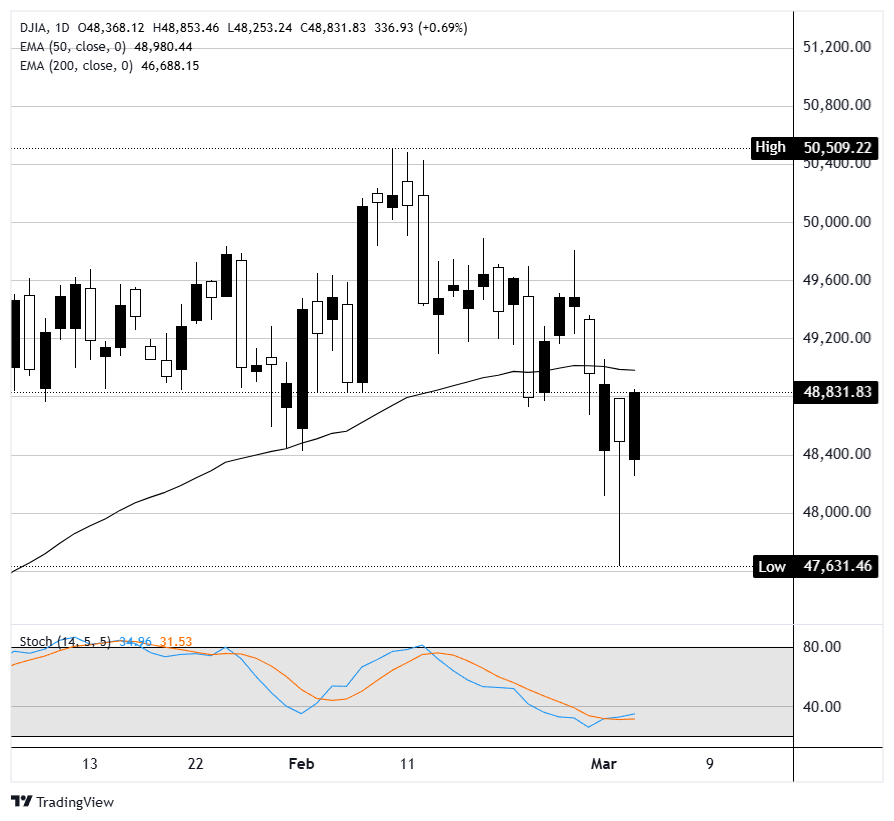 截至周三发稿时,道琼斯工业平均指数上涨312点,或0.65%,报48,807点,收复了周二大部分的损失,周二该指数在盘中一度下跌1.2K点,最终收盘下跌403点