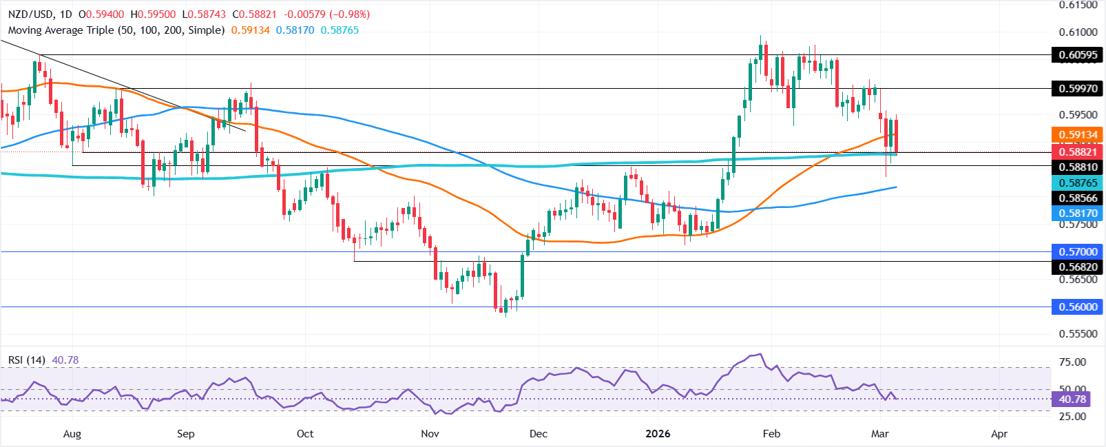 纽元/美元价格预测:下跌至200日均线,关注0.5800
