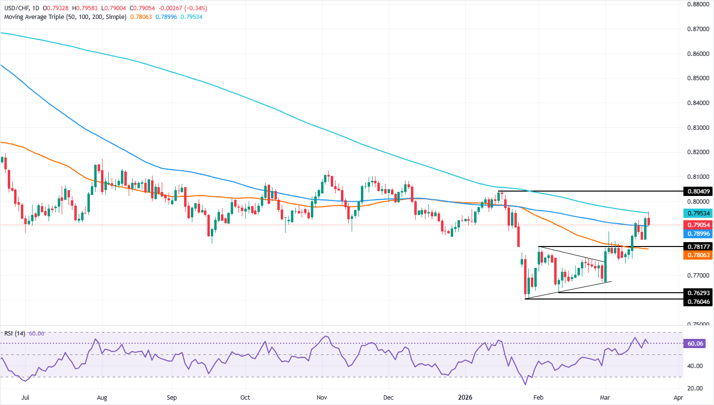 美元/瑞郎价格预测:美元在200日均线处受阻,下跌至0.7900附近