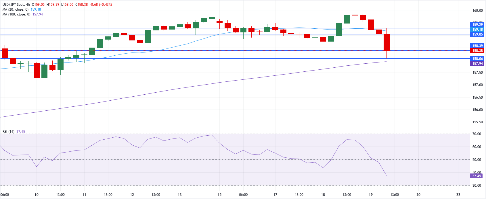 美元/日元周四跌至158.40,投资者评估两国央行的决策。一方面,美联储(Fed)决定维持利率不变,主席杰罗姆-鲍威尔表示,能源价格上涨将推高整体通胀。