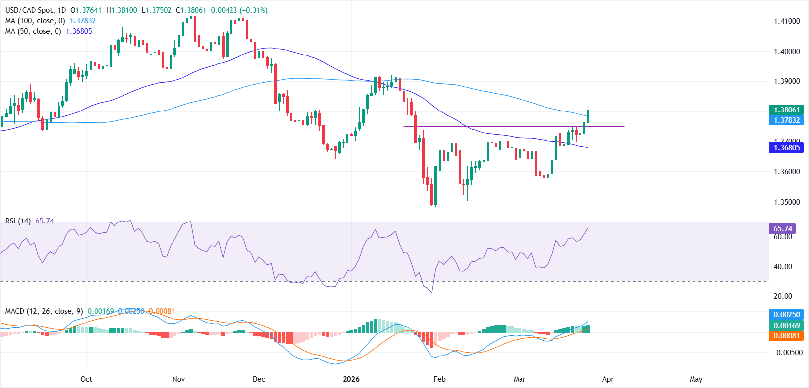 美元/加元价格预测:多头在突破1.3700-1.3750阻力区后掌控局面