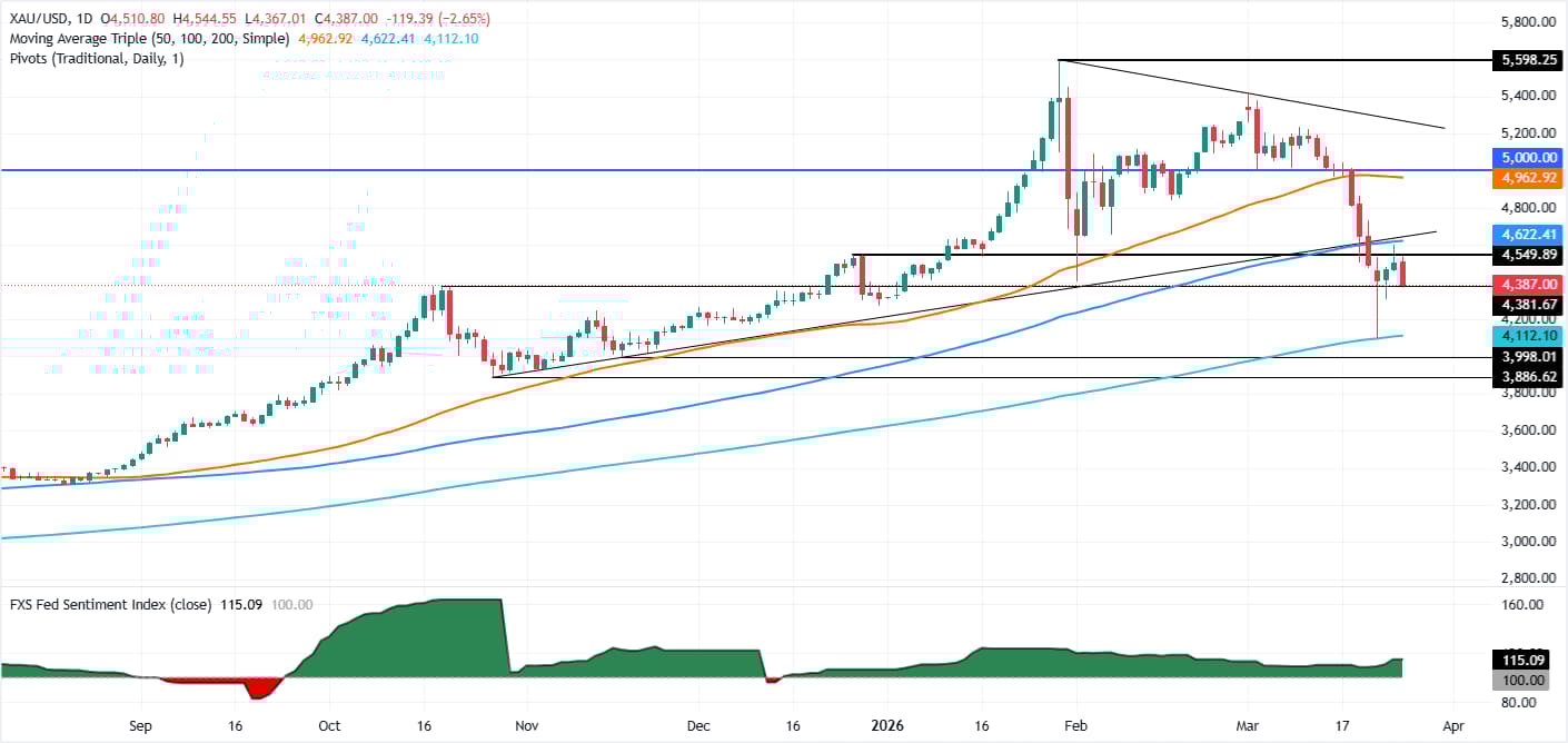 黄金(XAU/USD)价格周四暴跌近2.50%,因油价上涨,市场对美伊可能达成协议的不确定性加剧,增加了通胀上行压力并推动美元走强。撰稿时,黄金/美元报4,394美元,日内最高触及4,544美元。