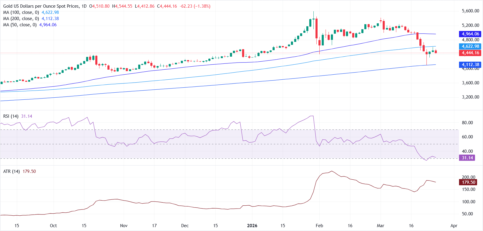 金价下跌,因美伊不确定性和全球利率前景施压