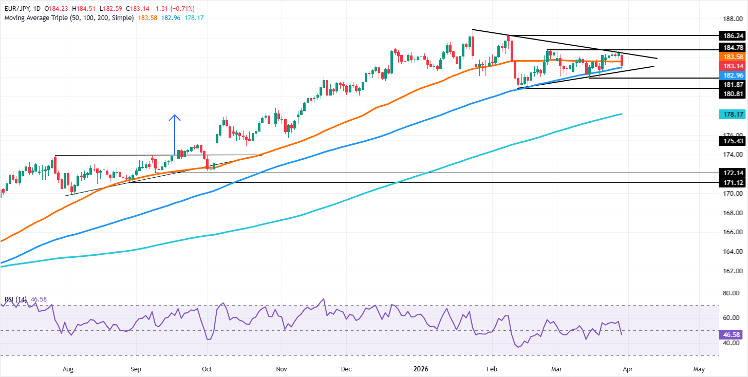 欧元/日元价格预测:跌破184,空头瞄准100日均线