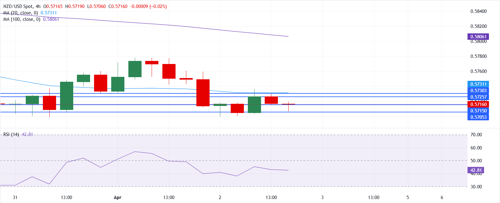纽元/美元在0.5710附近交易,在地缘政治紧张局势加剧和避险情绪升温的背景下,保持看跌态势,同时美元走强。