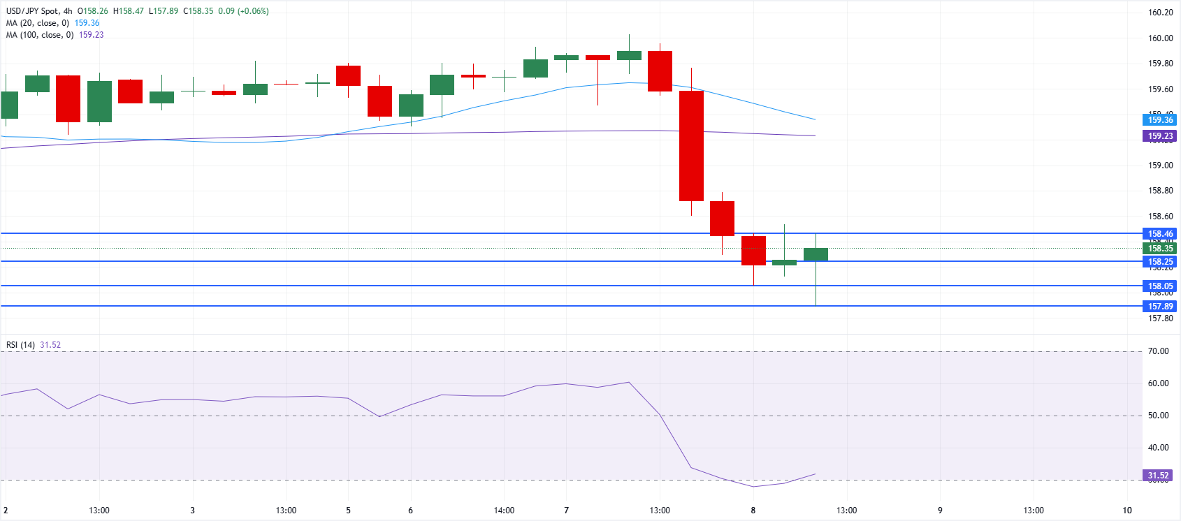 美元/日元货币对周三跌至158.30附近,尽管美国、伊朗和以色列已同意为期两周的停火。