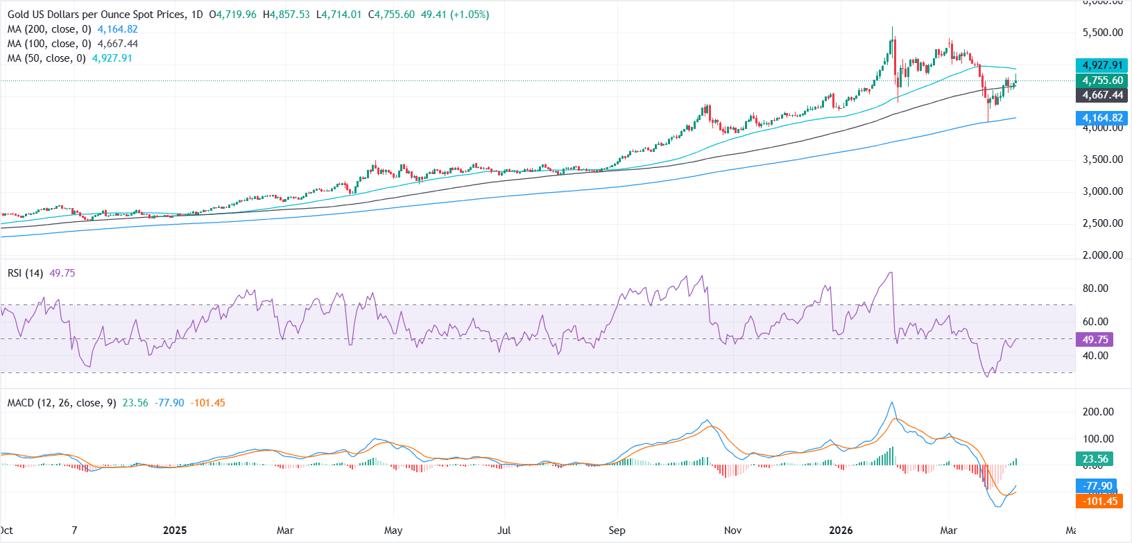 黄金(XAU/USD)在周三因美国与伊朗达成为期两周的停火消息后,涨至三周高点后回吐部分涨幅。撰写本文时,XAU/USD 交投于约4755美元,日内上涨近1%,此前触及日内高点4857美元。