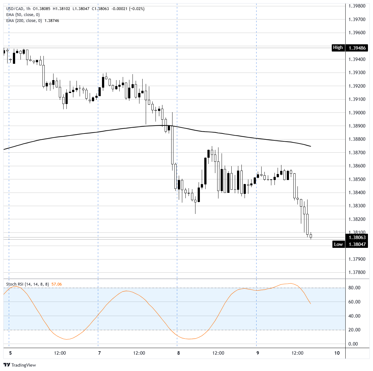 美元/加元自本周初以来下跌了近1%,从1.3965区域滑落至周四接近1.3800关口交易