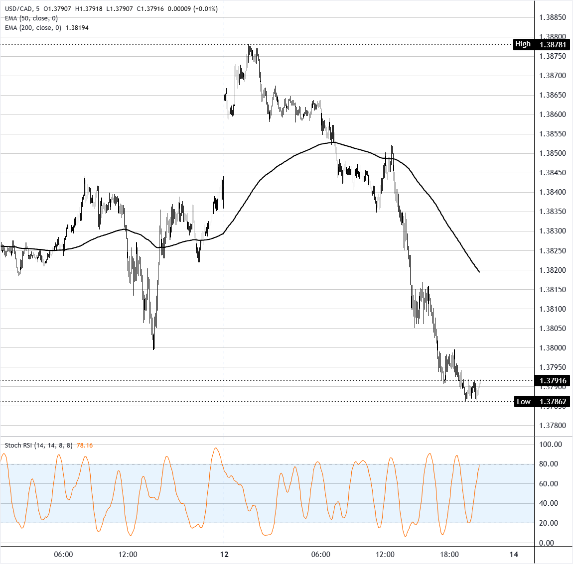 美元/加元周一下跌约0.40%,跌至时段低点1.3790附近,因原油价格飙升支撑加元(CAD)走强,同时美元(USD)普遍走软。