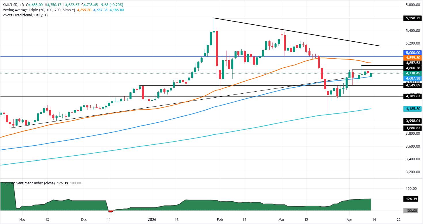 黄金(XAU/USD)价格周初回落,周一下跌约0.20%,因原油价格上涨,加剧了通胀螺旋的担忧,可能阻碍包括美联储(Fed)在内的央行降低借贷成本。