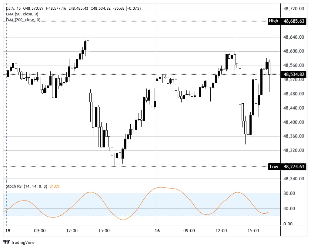 道琼斯工业平均指数(DJIA)周四上涨约90点,涨幅为0.20%,攀升至48,500点以上,华尔街在对美伊战争正朝着解决方向发展的信心增强的推动下,延续了本周的反弹走势。