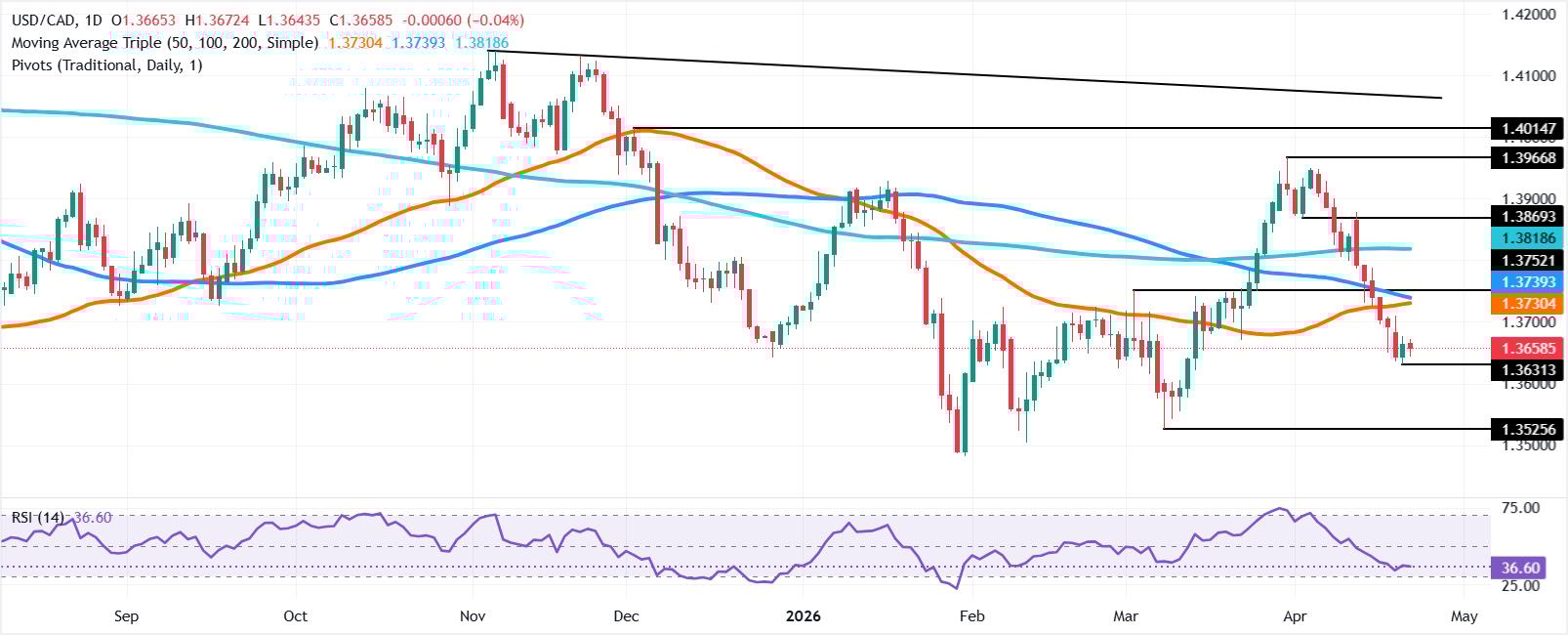 美元/加元价格预测:在RSI保持看跌的情况下徘徊于1.3650附近